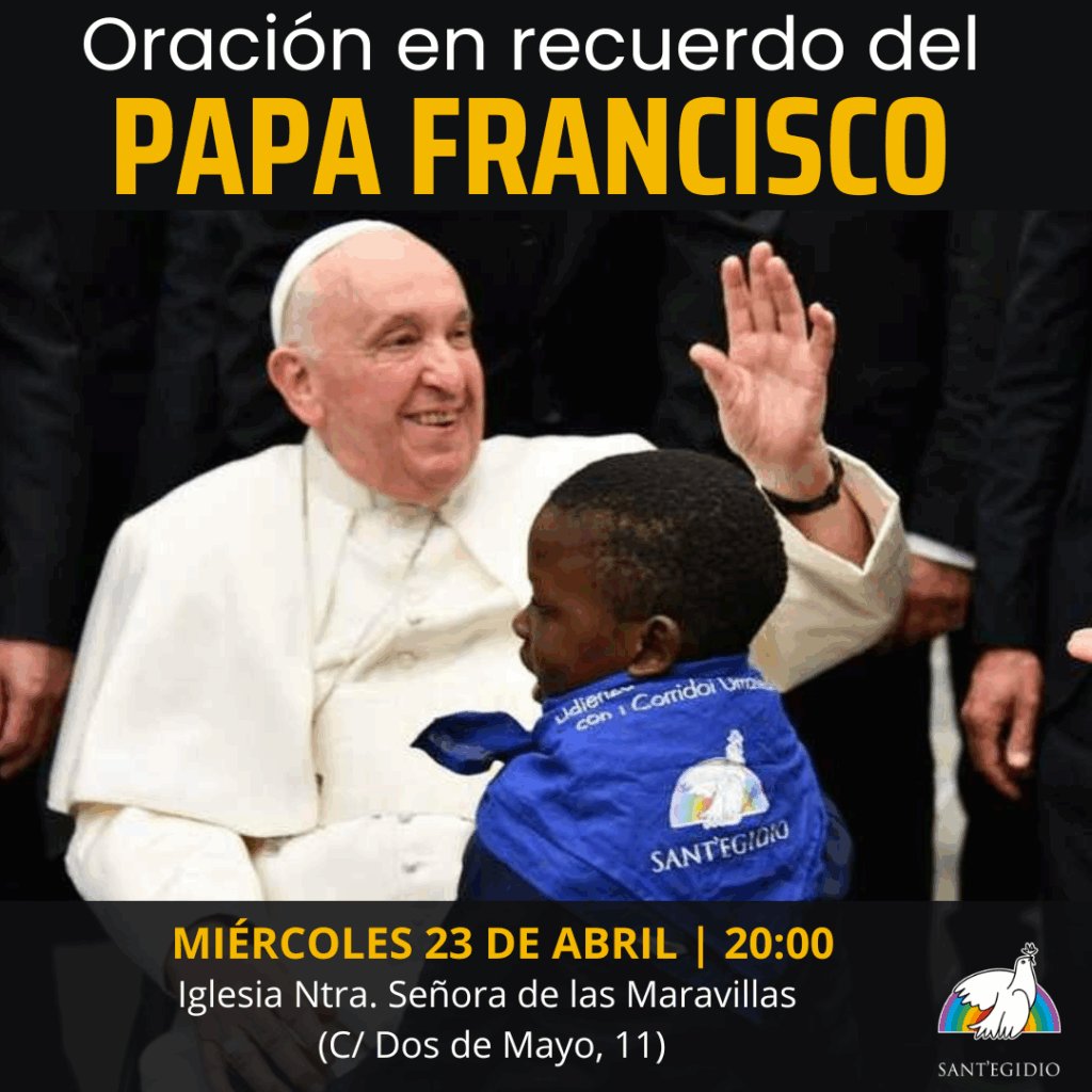 La Comunidad de Sant’Egidio de Madrid se reúne en su memoria para rezar juntos este miércoles 23 de abril a las 20:00 en la Iglesia de Nuestra Señora de las Maravillas. Os invitamos a participar en esta oración por su vida, su legado y para que seamos capaces de hacerlo crecer.