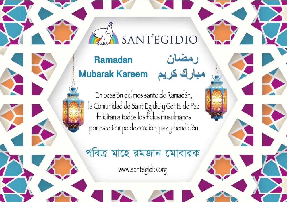 La Comunidad de Sant’ Egidio y el movimiento «Gente de Paz» nos unimos en oración y amistad junto a todos los amigos y hermanos musulmanes que celebran el inicio del Ramadán, un tiempo sagrado de ayuno, penitencia y oración para el Islam. Deseamos que este tiempo santo libere energías de paz y fraternidad, tan necesarias en momentos convulsos en los que parece imponerse la división, el enfrentamiento y la violencia.