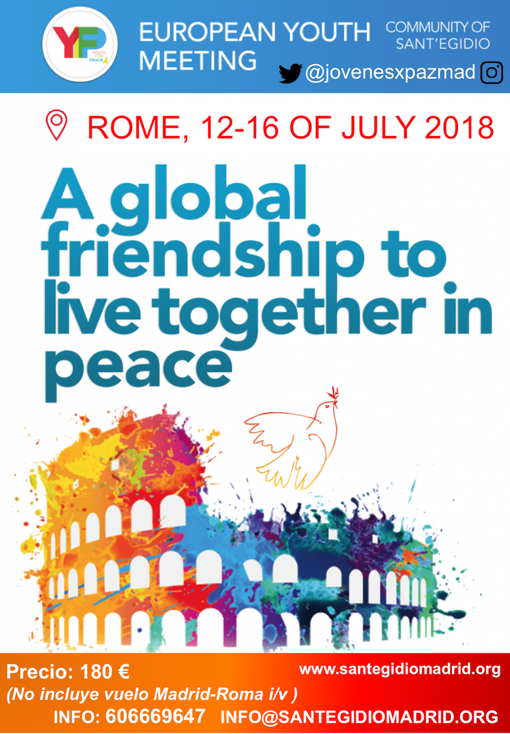 Encuentro Internacional de Jóvenes x la Paz en Roma en Julio 2018