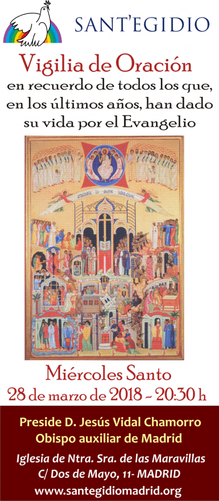 Vigilia de oración en recuerdo de quienes han dado su vida por el Evangelio en nuestro tiempo. Preside D.Jesús Vidal (Obispo Auxiliar de Madrid)
